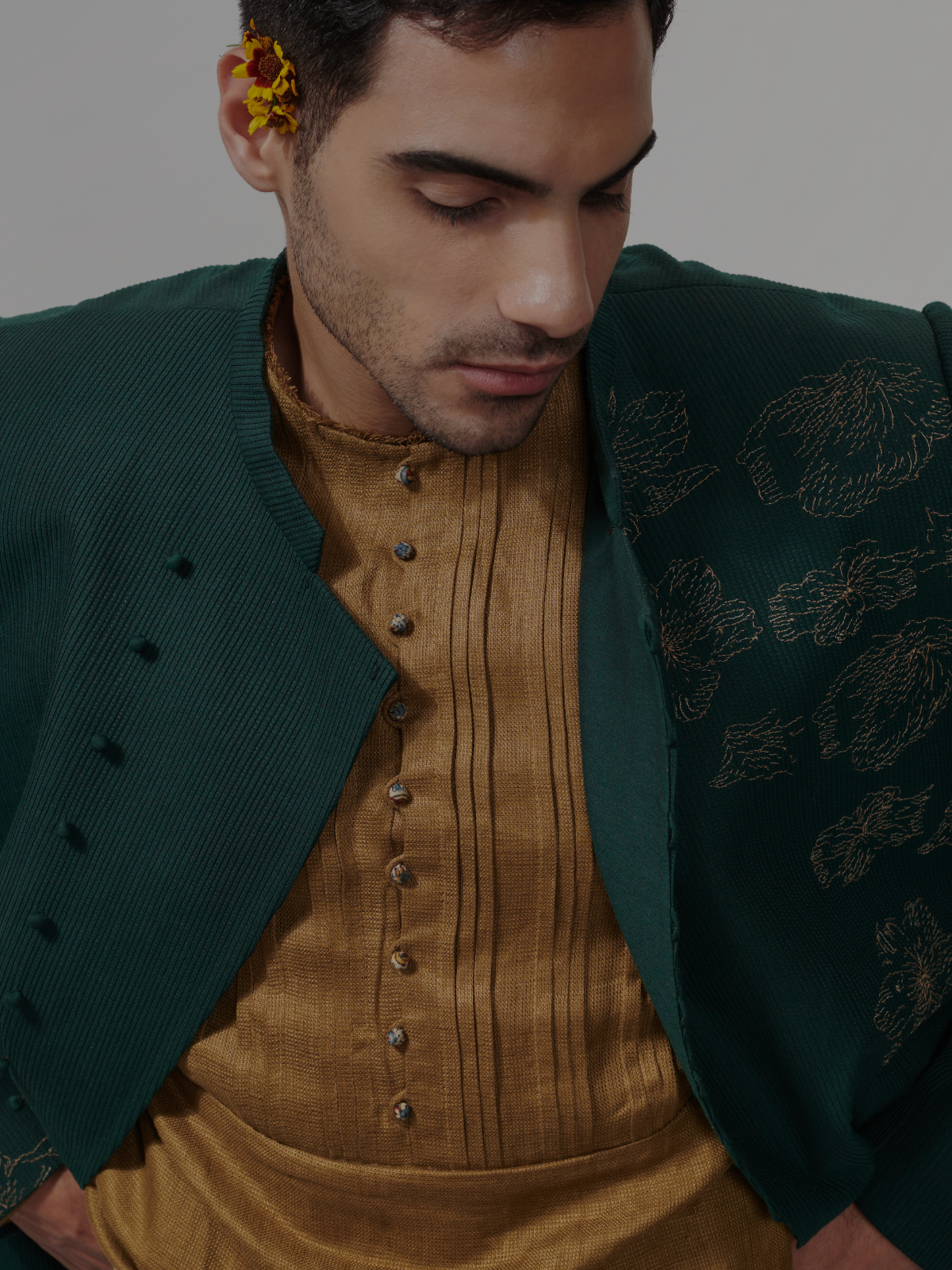 At Khanijo, We believe in the values of craftsmanship, cultural storytelling, and conscious luxury. We reinterpret India’s artisanal heritage for the global stage. Each garment is a narrative—meticulously handmade, deeply considered, and designed to transcend seasons and borders.