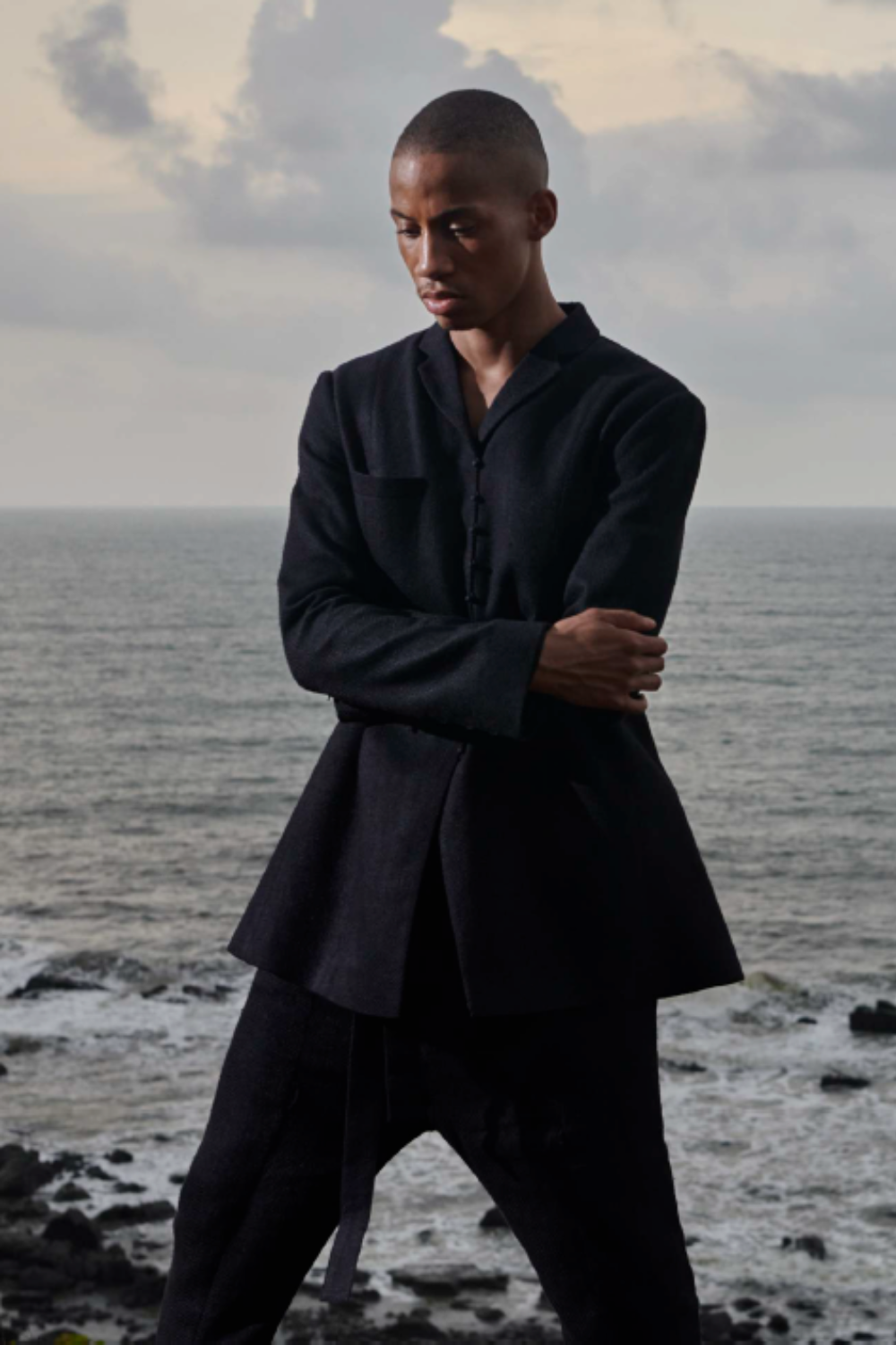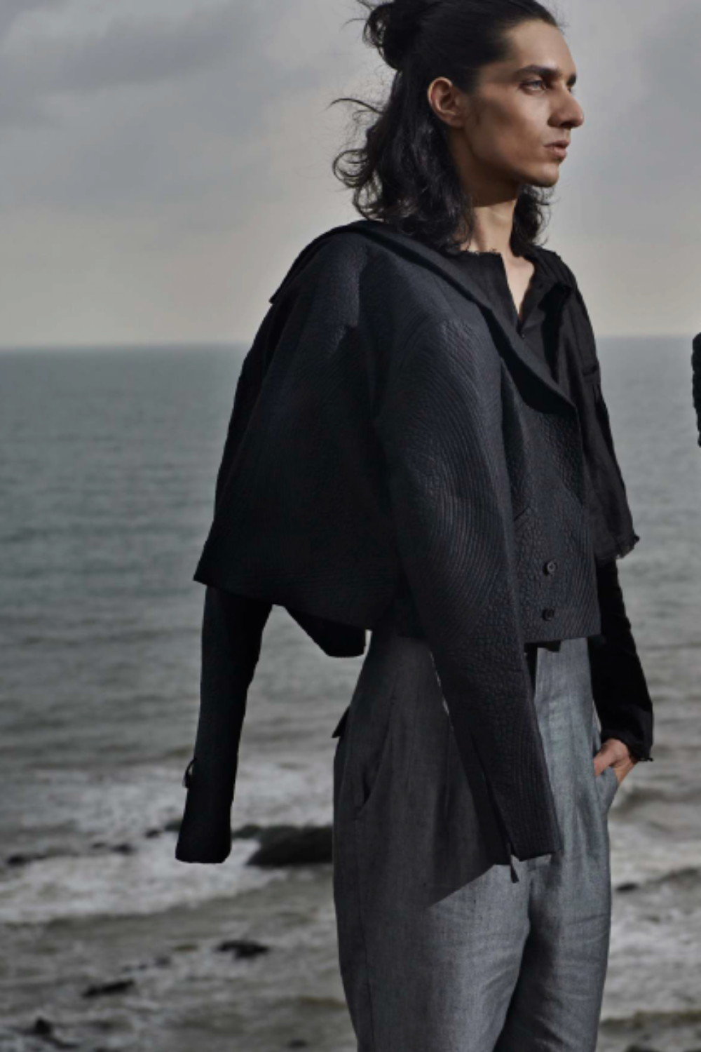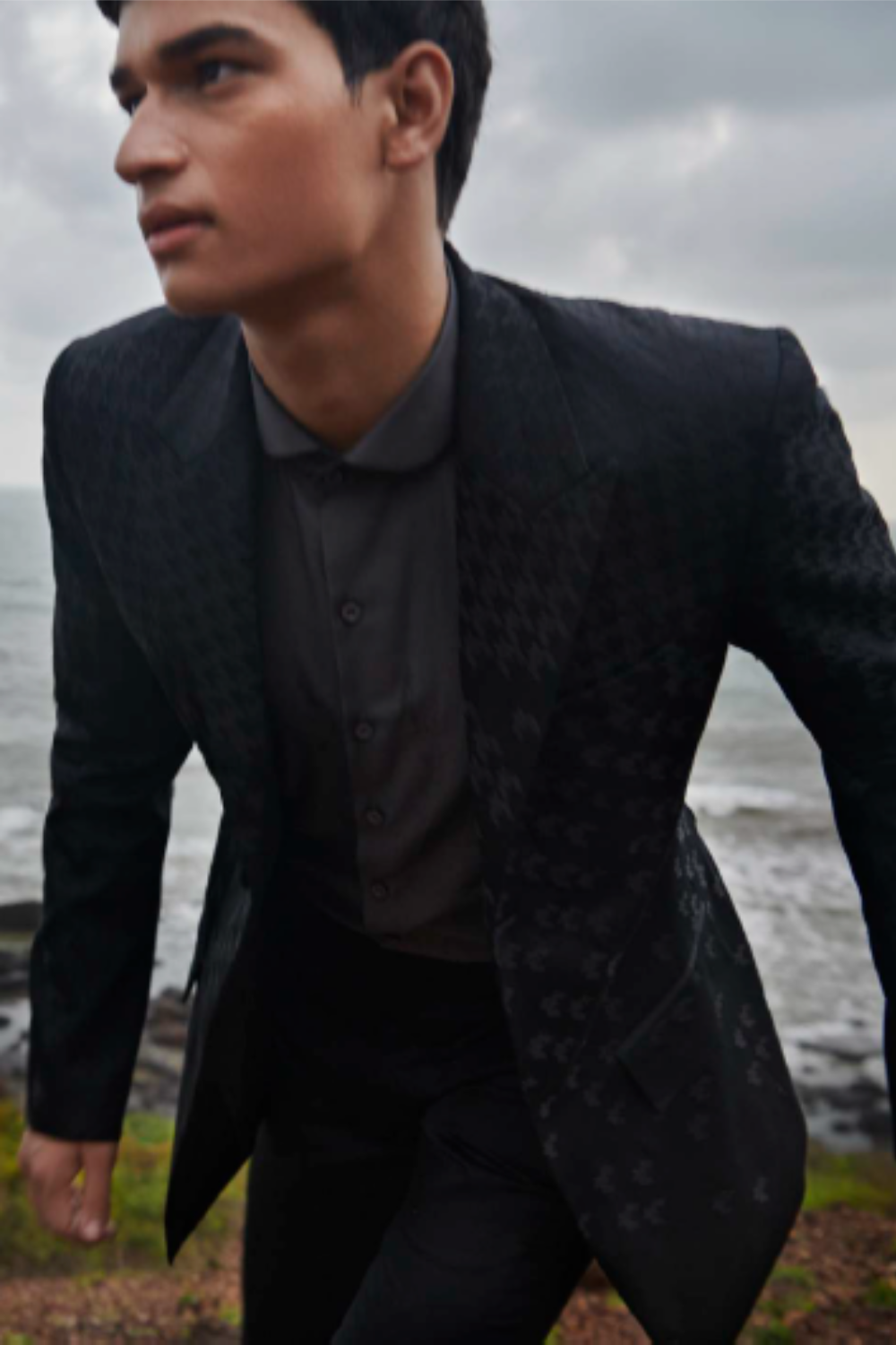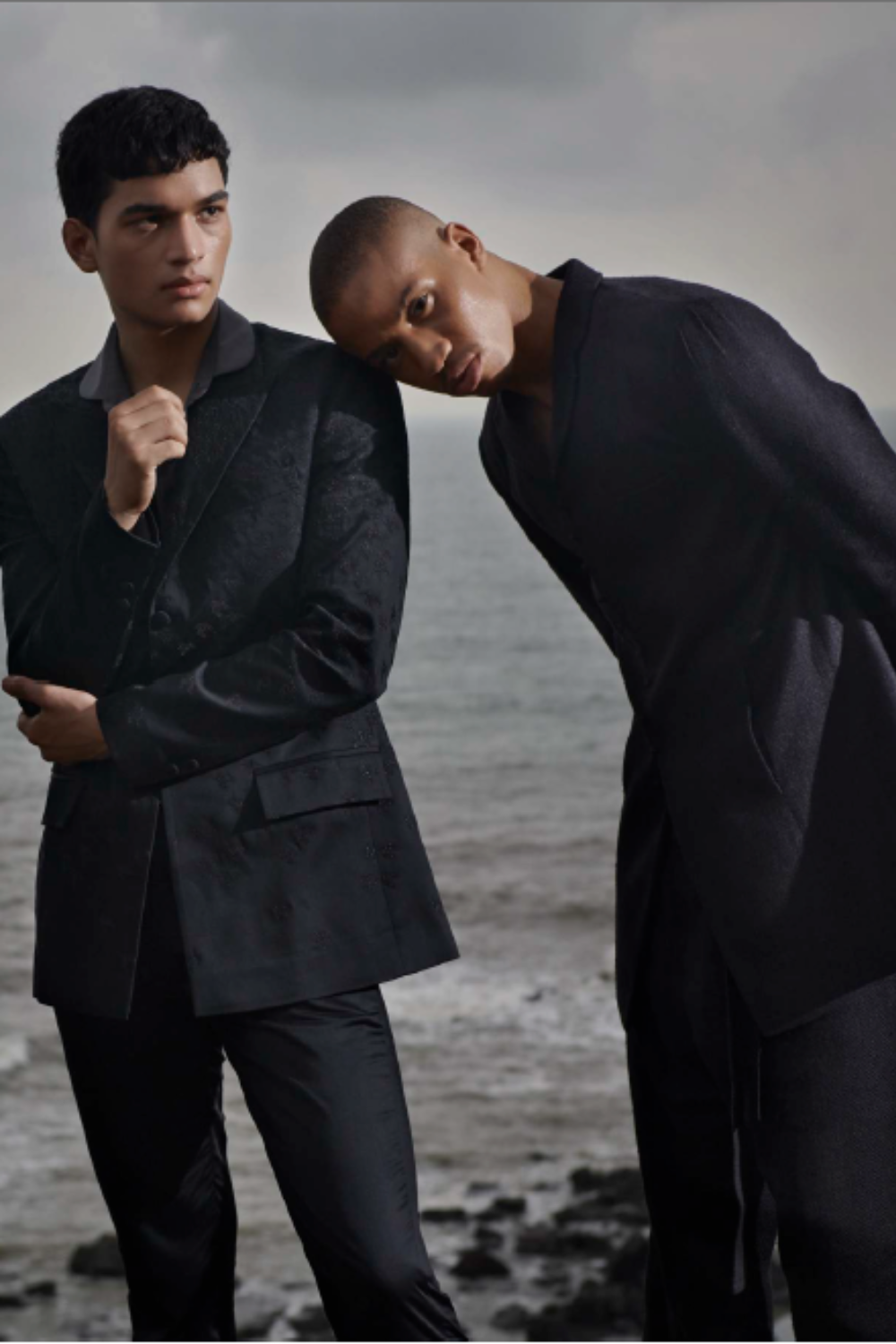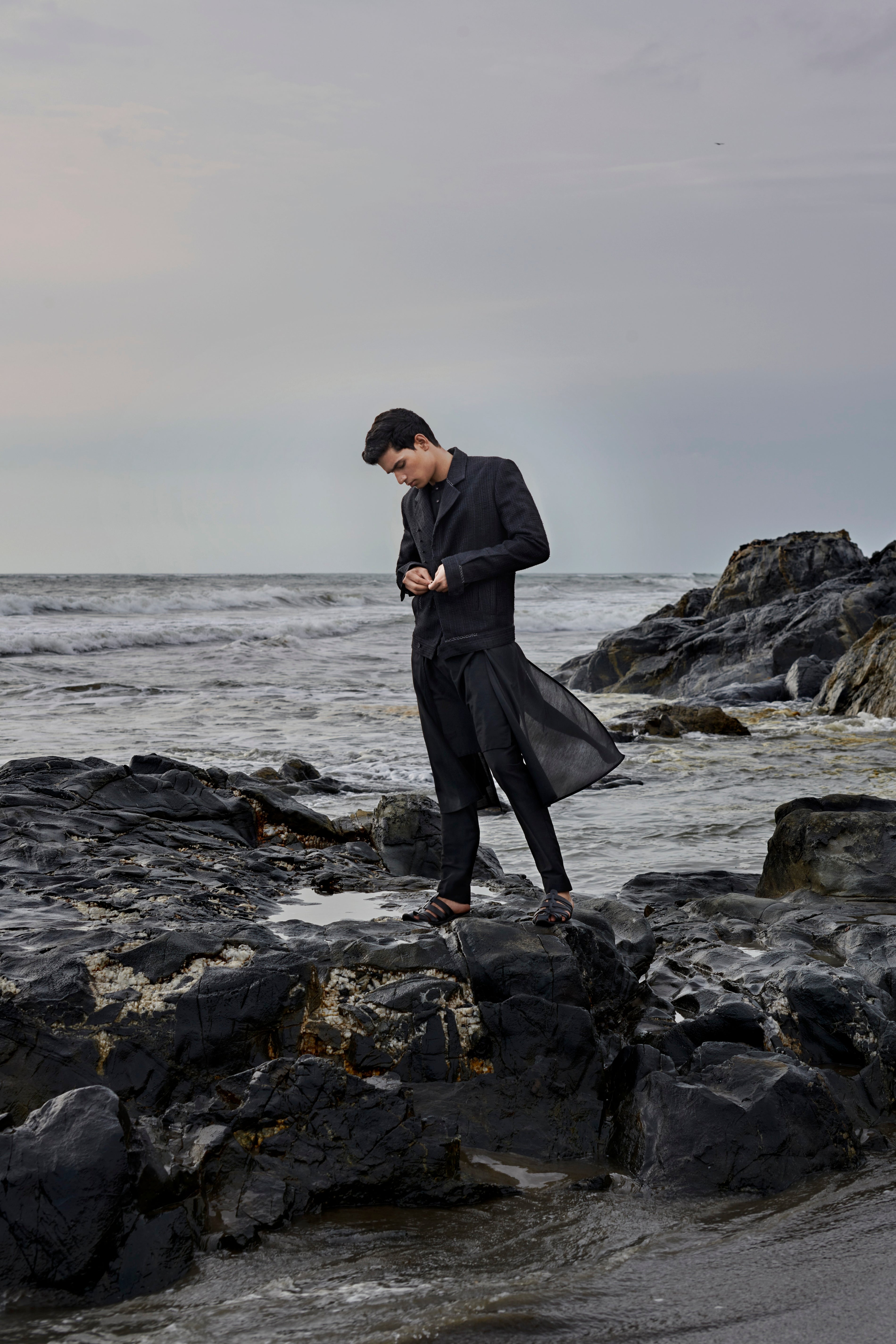 Lab is the evening line which is defined by bold sleek silhouettes, exquisite materials and dark urban colour palette . Lab tries to redefine the silhouette for the urban man who is flamboyant, exuding confidence, power and resilience.