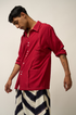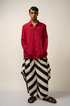 This shirt is a relaxed, artisanal piece crafted from textured red cotton, featuring intricate hand-embroidered kantha stitch detailing.Designed with a loose silhouette, it includes a spread collar, three-quarter sleeves, and a front button closure, balancing structure with ease. The minimal tailoring is elevated by the tactile lines of white thread, giving it a contemporary, handcrafted edge that bridges heritage with modern casual wear