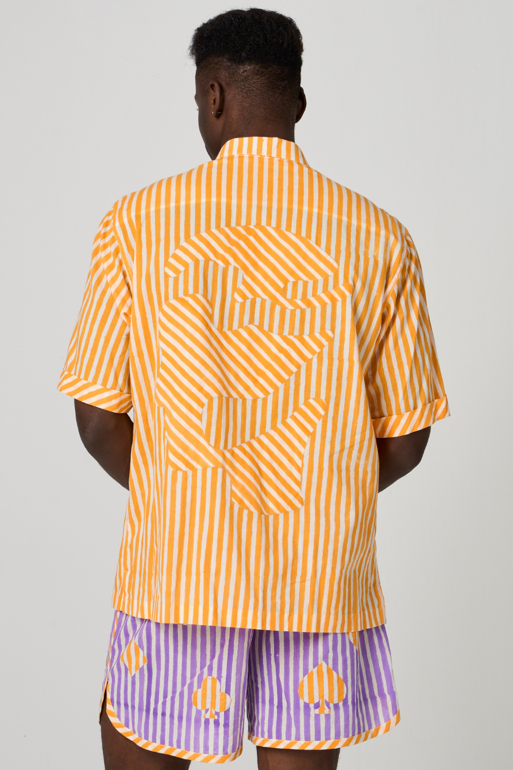 Inspired by the timeless allure of playing cards, a symphony of block printed stripes and colorblocks seamlessly blending together