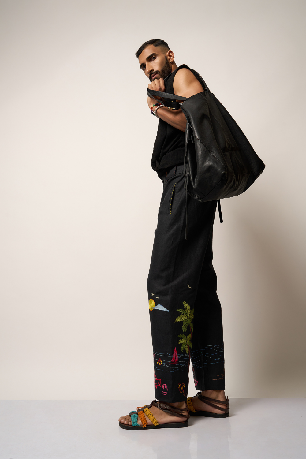The Miami Shirt features a vibrant embroidered cityscape in a playful palette, capturing the charm of neon-soaked streets and retro flair. Style it with dark linen trousers and beaded accessories for an effortless resort edge. Black