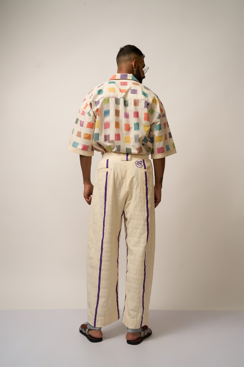 Featuring a hand-woven Ikat shirt from Telangana . It's playful, irrevent and effortlessly