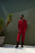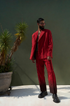 Inspired by the slow burn of glowing embers, this suit features a striking ombre that deepens through shades of red. Crafted from a luxurious viscose silk blend, it showcases our signature pleated technique, adding depth and fluidity to the silhouette. Finished with a rich Bemberg lining for a refined inner touch.