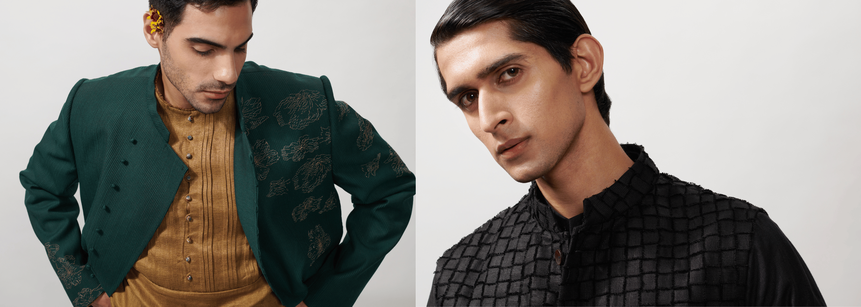At Khanijo, We believe in the values of craftsmanship, cultural storytelling, and conscious luxury. We reinterpret India’s artisanal heritage for the global stage. Each garment is a narrative—meticulously handmade, deeply considered, and designed to transcend seasons and borders.