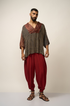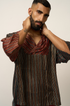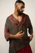 This relaxed shirt reinterprets the timeless craft of Ajrak in a contemporary silhouette. Handcrafted in richly hued red and black cotton, it features fine vertical stripes created through traditional resist-dye techniques. The easy drop-shoulder sleeves evoke effortless movement and ease, while the boxy fit adds a sense of structure.