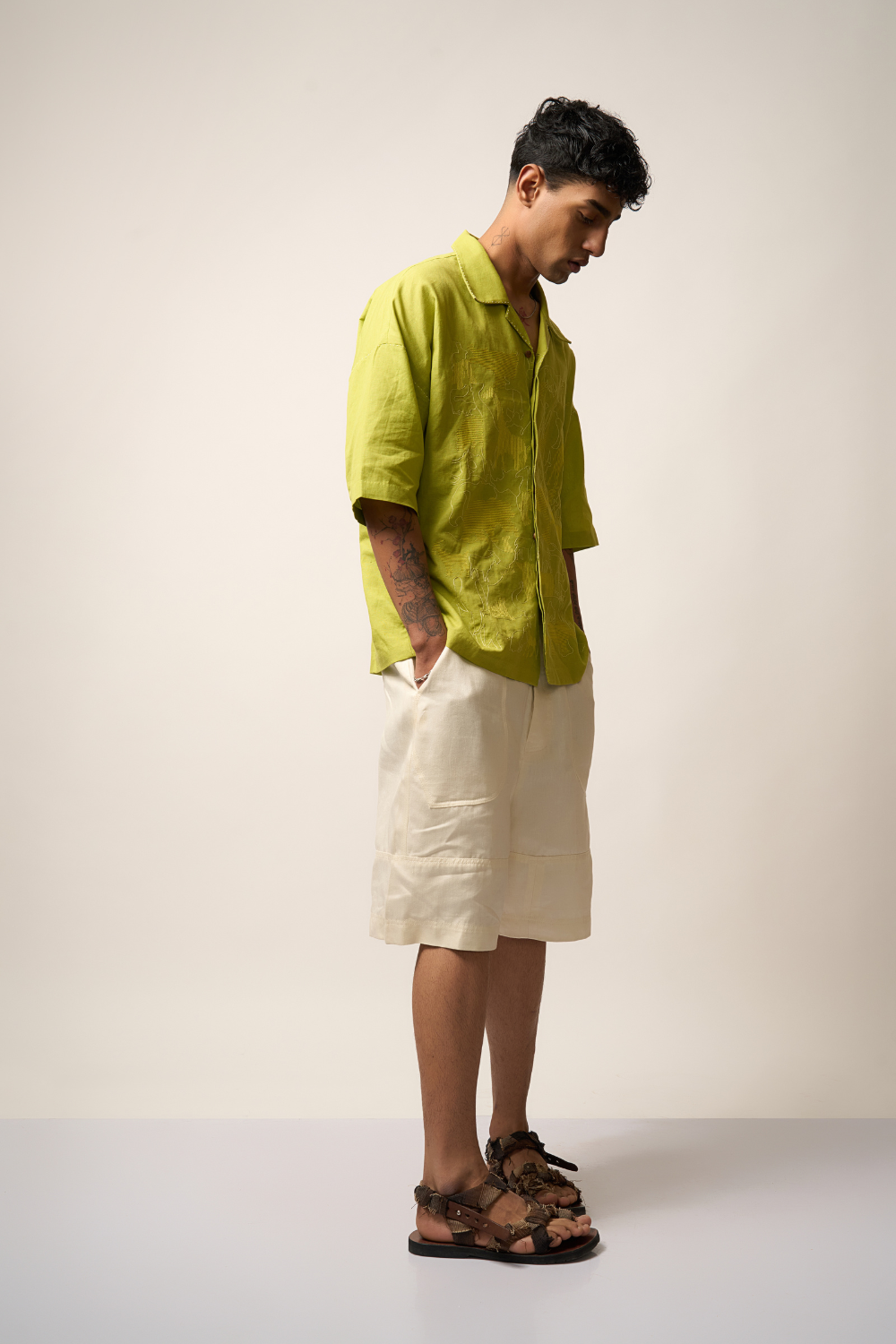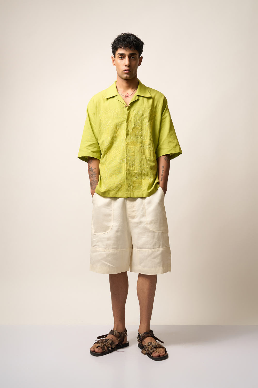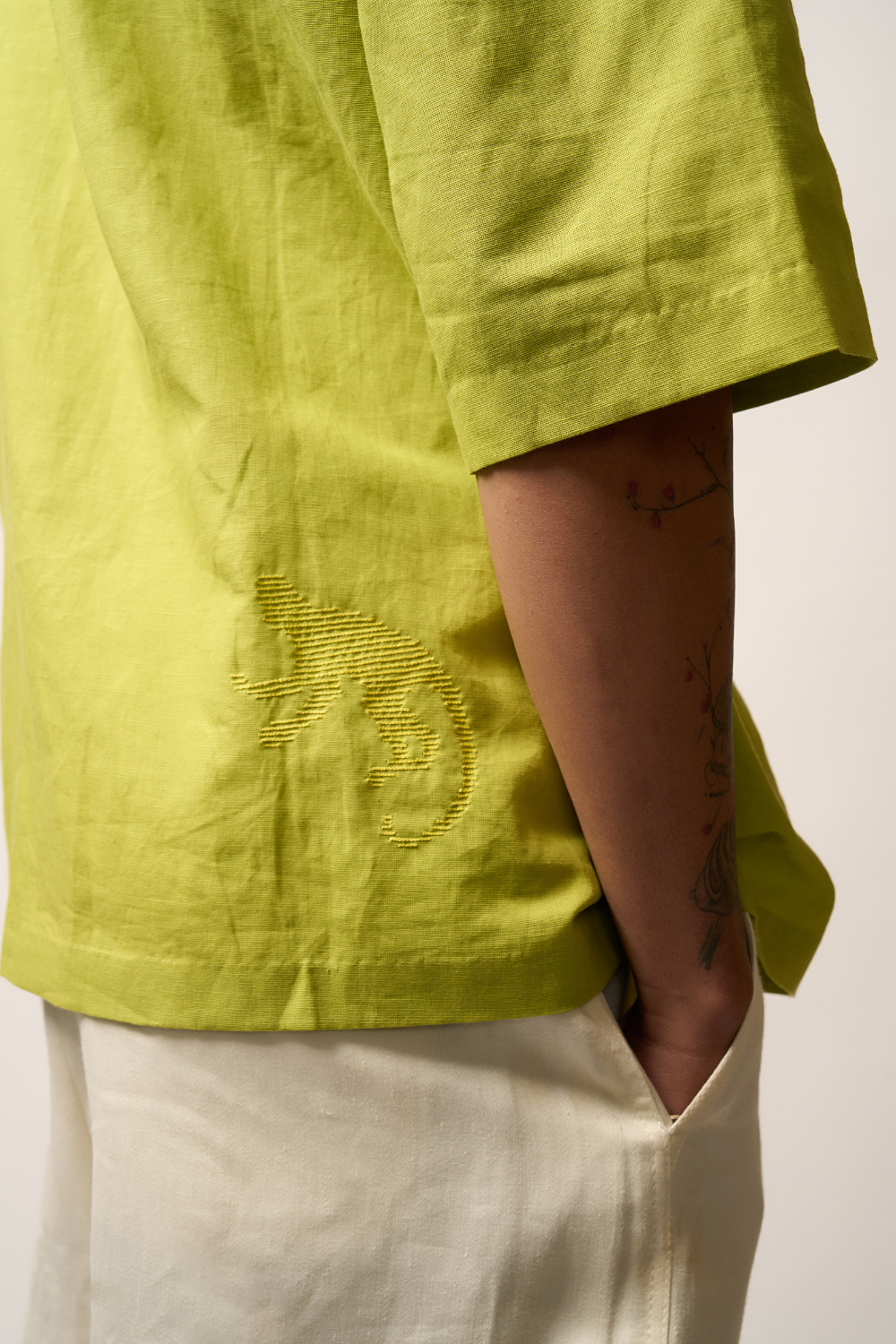 A relaxed silhouette crafted in breathable linen, brought to life with intricate chain stitch embroidery. The Animal Farm Shirt tells a subtle story through hand-drawn animal and landscape motifs. Perfect for everyday ease or a statement layer.