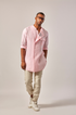 Long Line Kurta showcases unique pattern making with its diagonal button placket and minimalist collar, hand embroidered balloon motif, creating a modern, clean silhouette. It's a statement piece for upscale casual gatherings, adding an unexpected twist to your wardrobe.