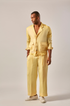 Step into the lightness of spring summer with this statement Basket Weave Shacket in bright Yellow linen, featuring a relaxed fit, structured basket-weave detailing, and exaggerated flap pockets for a utilitarian touch. This unique garment is perfect for summer wedding resort wear or bold creative office attire.