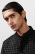 Our basket weave bandi is crafted in pure linen cut into stripes, woven together in a basket weave pattern. Made in a classic bandi cut, it is finished with wooden buttons and a fine satin lining.
