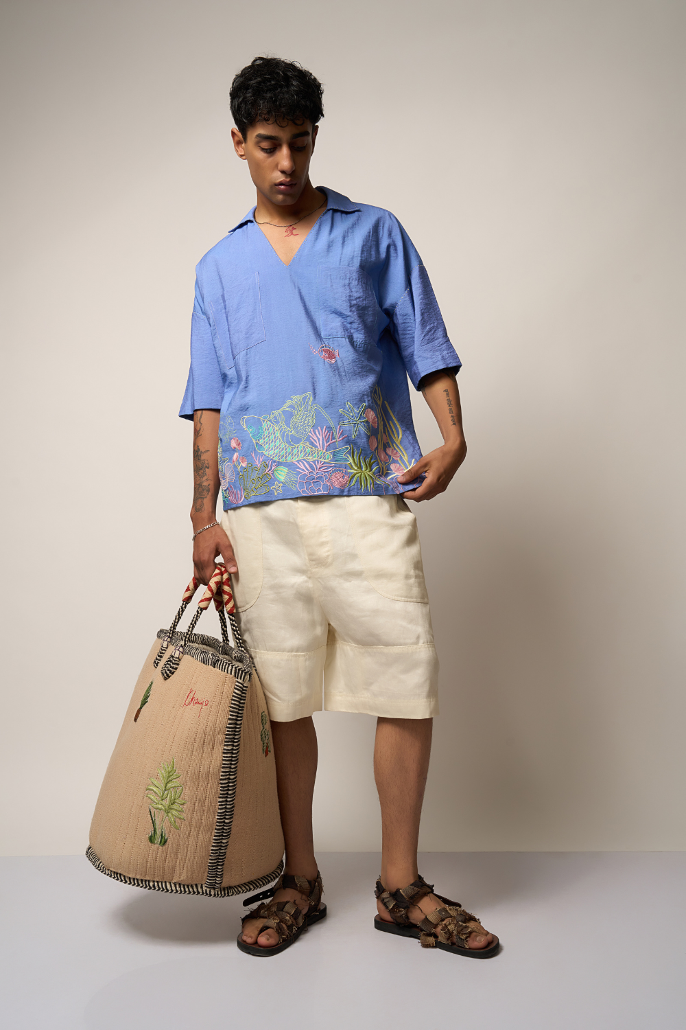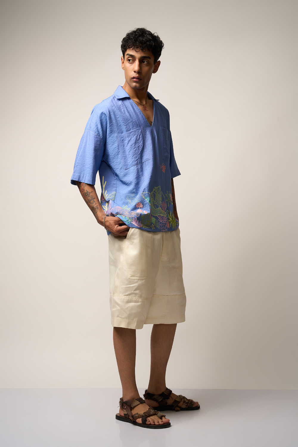 This breezy Coral shirt brings a sense of playfulness and craft to everyday dressing. Cut in a relaxed silhouette, it features machine embroidery brought to life with hand-done details—adding dimension and intimacy to the botanical motifs along the hem. The soft, open neckline and lightweight fabric make it an easy choice for warmer days, while the intricate embroidery invites a closer look.