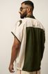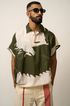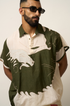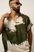 Make a bold statement with this relaxed-fit khadi shirt featuring an abstract dragon & ox motif, hand-drawn style. The earthy olive and natural ivory color-blocking adds depth and character, while the soft, breathable khadi keeps you cool and comfortable. Finished with a short placket and open sleeves, this shirt blends artistry with ease—perfect for those who carry wild elegance with subtle confidence.