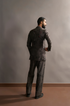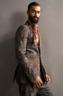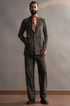 Men's Charcoal Gulbash printed suit crafted with premium linen. Whether you're dressing up for a special occasion or making a statement at the office, the charcoal hue and unique print offer a versatile look that suits any event.