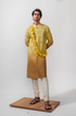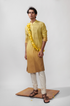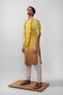 The hues of the fading sun may be seen in our yellow ombre Pin tuck kurta with embroidered flowers floating on it. The kurta is handcrafted in ombre dyed cotton silk, textured with fine pin tucks. It is well equipped with pockets to take care of your belongings and finished with a concealed placket. Finish the look with a pair of churidaars or salwars along with kolhapuris or sandals if your pick is a fun, dipped in traditions haldi, mehendi , sagan or sangeet or play it cool and sharp with a pair of trousers and slip on shoes and take it to a sundowner or an evening affair. Request an appointment with our design team for customisations.