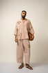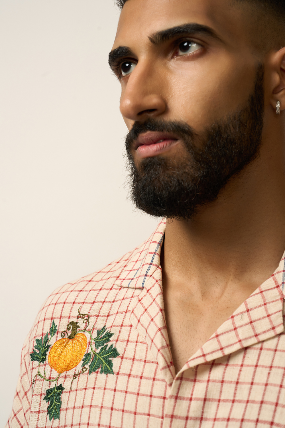 Elevate your everyday style with this breezy, hand-embroidered co-ord set crafted from soft cotton featuring a subtle check pattern. The relaxed-fit shirt with a normal collar and half sleeves pairs effortlessly with relaxed trousers, both adorned with playful floral and bee embroidery that adds charm and character. Finished with functional side pockets and an elasticated waistband for all-day comfort, this set is perfect for lounging, casual outings, or slow summer days.