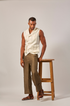 This sleeveless double breasted Safari Vest in linen is a statement layering piece that channels the high-waisted, old-fashioned aesthetic with multiple functional flap pockets and a relaxed cut. It’s a bold statement piece for resort wear or outdoor luxury events